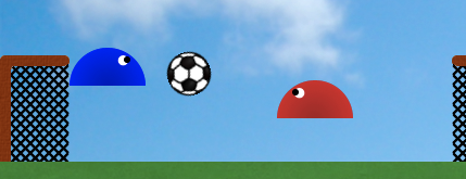 You control the slime on the left using the arrow keys at the bottom of the screen. Press the left and right arrow buttons to move and the up arrow to jump. Your objective is to get the ball into the right-side goal while keeping it out of the left-side goal.