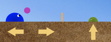 Controls are easy to learn. You are the slime on the left. Use the left and right arrows at the bottom of the screen to move your slime. Press the up arrow to jump. Your goal is to get the ball to land in your opponent's court. Complete all 10 levels with increasingly difficult opponents to become the slime champion!